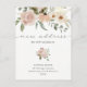 This simple, elegant new home moving announcement features a boho rustic bouquet of watercolor flowers and greenery in neutral shades of peach terracotta and ivory, on a white background. Elegant script typography says "new address", for the perfect stylish way to let friends and family know you have moved.