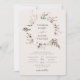 Simple Boho Wedding Invitation. Chic and modern, this stylish wedding invitation features beautiful hand-painted watercolor tropical cream and ivory flowers, tan pampas grass with sage green palm leaves arranged as a trendy wreath. The background is beige and the text is black. The back of the invite includes a beautiful pattern that can easily be deleted if you prefer. Find matching items in the Tropical Boho Wedding Collection.