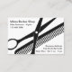 Simple yet bold barber shop business cards designed with cutting shears and a styling comb graphic and generic calling card layout you can customise online in tis editable template.