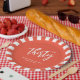 It's time to party to celebrate a 30th birthday bash with this modern and bold birthday party plate. This simple stylish design has a vibrant orange background with white handwritten script accents blended with a modern sans serif font. The plate is bordered in a coordinating orange and white stripes pattern. Personalise the text template with your guest of honour's name and date. These plates are available in 9-inch diameter and 7-inch diameter. Shown here in the 9-inch style.