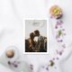 A beautiful save the date card with a simple white border and elegant typography. Features two large, portrait orientation photos, showcasing your special moments shared together. The oversized calligraphy script that bleeds over the photo and border adds a touch of drama and romance, while the minimal layout ensures a stylish and modern aesthetic. Perfect for couples seeking a trendy yet classic wedding announcement. Your guests cherish this unique two-sided design and it will set the tone for your beautiful wedding day.