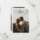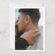 A beautiful save the date card with a simple white border and elegant typography. Features two large, portrait orientation photos, showcasing your special moments shared together. The oversized calligraphy script that bleeds over the photo and border adds a touch of drama and romance, while the minimal layout ensures a stylish and modern aesthetic. Perfect for couples seeking a trendy yet classic wedding announcement. Your guests cherish this unique two-sided design and it will set the tone for your beautiful wedding day.