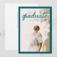 Front: A single portrait photo of the graduate is centred, framed by a thin, elegant border. Overlaid on top of the photo, the word "Graduate" is written in a large, stylish script font, adding a celebratory and personalised touch.