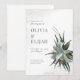 These vintage 5" x 7" wedding invitations feature a succulent bouquet with dried flower accents on a weathered texture background. Placeholders begin with, "Please join us for the marriage of," the wedding couple names, date and time, venue with address and, "reception to follow."