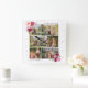 Simple Botanical Floral Mum 6 Photo Collage gifts Square Wall Clock