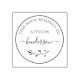 This simple and elegant library book stamp features a classic round frame with the custom text ´´this book belongs to´´ around it in classic typography. Your family name in the handwritten script is in the centre and your first name is above. Below is a hand-drawn leafy branch. Personalise it by clicking on the ´´Personalise´´ button and create your own unique ´´from the library of´´ book stamp!