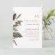 Simple and whimsical watercolor boho botanical greenery bouquet with monograms terracotta and white one photo wedding invitation.