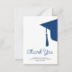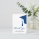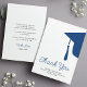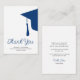 Modern trendy script navy blue and white simple minimalist graduation budget affordable MINI SIZE thank you card template featuring a graduation cap with tassels. ++++++++++ Easy to personalise with your details and custom text!
