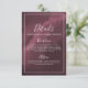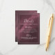 This minimalist wedding details card features a merlot red or burgundy watercolor background with white fonts and a simple white line frame on both the front and back. This card includes essential details about the reception, accommodations, travel, attire, and more. Exuding simplicity and elegance, it ensures your guests are well-informed for your magical evening. The text is presented in a mix of calligraphy script typography and a classic serif font. The simple and elegant design integrates seamlessly with any wedding theme, including traditional, classic, or modern. It works especially well for autumn or fall weddings but can also be adapted to match any season, making it perfect for spring, summer, winter, or any time of the year. The chic jewel-tone watercolor background and white font colours can be customised to fit your specific preferences. Its understated elegance makes it a versatile choice for your special day. Simple Stylish Elegant Burgundy Watercolor Wedding Details Card.