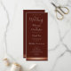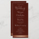 An elegant modern rich burgundy wedding program featuring two rose gold stripes at the bottom of the card. Ceremony and wedding thanks have been included on the front of the program whilst all of the bridal party have been included on the back.