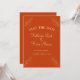 This is a simple customisable minimalist style Save the Date wedding invitation in dark orange. The text and the leaves are in a soft yellow gold colour. It is perfect for a tropical or fall wedding theme.