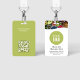 This design features a your logo here badge, a business company, photo barcode QR code, business personnel staff employee, name and title, branded, a simple minimalist, modern professional, with standard employee office supplies, a minimal simple green style.