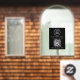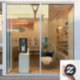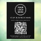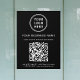 Simple modern black window cling sign for your business. Upload your logo and your QR code for customers to scan for a list of your products, services, prices, hours, etc. Add your business name, phone number and street address or other text in white typography.