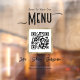 Simple text with business guest option. Qr code for food or service menu with website or social media connection. Like share subscribe