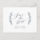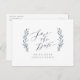 Simple calligraphy dusty blue greenery wedding announcement postcard