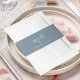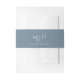 This design features a simple dusty blue monogram ampersand belly band, with an elegant classic traditional invitation, a stylish trendy calligraphy script, a romantic elegance sophisticated simple, wedding stationery paper supplies, with a monogrammed initials letters text, a simplistic minimalist minimal elegance, simplistic elegance white and blue, creative block style lettering, wedding invitation stationery suite