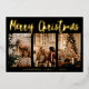 Simple Calligraphy Striped Three Photo Christmas Foil Holiday Card. (Photo credits to Cottonbro on Pexels. Kindly replace it with your own.)