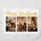 Simple Calligraphy Three Photo Christmas Foil Holi Holiday Card
