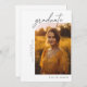 Celebrate your academic accomplishments with this Modern Simple College High School Photo Graduation Announcement. The design is both minimalistic and elegant, making it perfect for showcasing your favourite graduation photos. This announcement is double-sided and customisable, ensuring that it perfectly fits your needs. Simply click "Personalise" to enter your details. This minimalist graduation announcement is perfect for both college and high school graduates. Make your graduation announcement unforgettable with this modern and stylish design.
