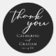 Simply chic and stylish, our minimalist winter wedding collection features elegant cursive typography for your modern event. Impress your guests with this bold evening wedding favour sticker with simple white script that reads Thank You above the couple's names and wedding date. The perfect addition to an upscale reception party favour gift.