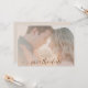 A soft blush overlay makes this simple, modern and effortlessly chic wedding photo save the date a nice choice for a fall wedding or for any couple with blush, soft pink, monochromatic beige or dusty pink colour schemes.