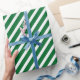 Contemporary diagonal white stripes pattern on a green background. Modern but simple plain whimsical design for wrapping those fun birthday, surprise, or Christmas presents with.