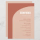 Wedding menu. Minimalist yet striking: adopt this slightly retro elegant typographic design for your wedding stationery, with a modern arch design and terracotta & burnt orange colours. Fully customisable text, colours and backgrounds.