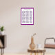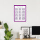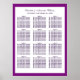 A simple Chic Purple wedding reception seating chart with the bride and groom's name and the wedding date at the top. Customise and personalise to add your own details . All text in dark purple on white inside a purple border. On the right, you can use the template to easily fill in the names of your guests by table. When done with that, make sure to click "Customise it!" to change any font colours and styles, remove tables, add tables, etc. to truly personalise it for your special Wedding day!