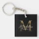 Simple Chic Script Metallic Black Gold Monogram Keychain