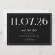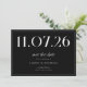 A simple modern save the date card. Personalise this chic black and white design to have your wedding date, names and details.