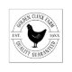 Brand your eggs with this clean and modern stamp. The simple design features a chicken illustration within a circular border. Customise it with your farm or business name and establishment year for a professional touch. High-quality self-inking stamp ensures clear, consistent imprints.