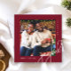 This contemporary one photo Christmas greeting card features elegant white calligraphy script typography and one photo on a trendy burgundy red background. The back of the card is a classy burgundy and white dot pattern. Shop this modern holiday collection for additional stylish colours and coordinating mailing accessories.
