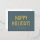 Simple Christmas Dusty Blue Happy Holidays Gold Foil Holiday Postcard