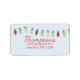 This design features a Christmas holiday, return address label, with a modern script, festive classic, create your own, informal casual style, a Xmas string lights, and a cute colourful, calligraphy script typography, perfect mailing accessory