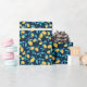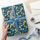 Simple citrus pattern. ripe lemons and bright leaves, dark blue background. Vintage texture. trend print for textiles and wallpaper.