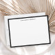 Simple and elegant, this classic design has a black outer border around a plain white background. A text template is included to personalise with your name or other desired text. These note cards are a wonderful choice to keep on hand for writing thank you notes, keeping in touch, and sending greetings. They are available in a variety of paper types, weights and textures and come with a plain white envelope.