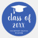 Simple Classic Blue and White Graduation Cap Round Sticker