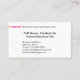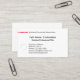 The design is a simple black and white, professional one with a dash of colour in pane divider line. The design offers customisable logo and typography fields for corporate/ business name, individual holder's name, professional/position title, business address, phone, email, webpage, and any additional contact information. On the back of the card is another customisable typography field for business tagline.