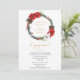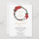 This simple classic Christmas engagement party invitation features a clean, bright white backdrop with simple, minimalist black and gold lettering and handwritten calligraphy accents. Embellishments of beautiful and classic green and red Christmas wreaths with delicate gold features create a perfect winter holiday aesthetic while maintaining a polished elegance for your Christmas wedding or other special event. As with all of our designs, if you have any questions concerning the design or would like something specially made to coordinate with your wedding, please just ask.
