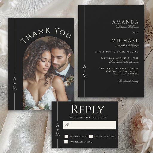 Simple Classic Elegant Black Minimal Wedding Invitation