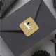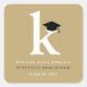 Simple Classic White Monogram Letter 'k' With Modern Graduation Cap On A Plain Gold Background, Grad Party Favour Sticker / Envelope Seal.