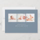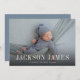 A simple and timeless birth announcement design featuring a full bleed horizontal or landscape orientated photo with baby's name and birth stats overlaid along the bottom in classic white lettering. Add three additional square photos to the back, along with a personal message.