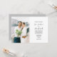 Simple classic horizontal photo wedding invitation. Front: photo and text side by side with script and plain text. Back is grey. Replace the existing photo with your own. To edit layout, click Personalise, Edit using Design Tool, then Edit Text. Use Cntl to select and move multiple sections at once.