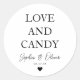 Simple Classic LOVE AND CANDY Heart Wedding Favour Round Sticker