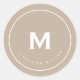 A simple stationery sticker with classic monogram medallion shown with monogram initial and name in a modern font on a beige background. You can customise using the fields provided. Ideal for mailing, labelling or decoration.