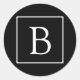 Simple Classic Monogram | Black w/ White Text Round Sticker