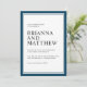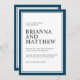 Simple and tasteful, this modern classic wedding invitation design has a navy blue double border with a white centre background. The text pairings are crisp and elegant with emphasis on the bride and groom's names which appear in large print. The colour scheme is a wonderful choice for coastal weddings or destination weddings as well as other chosen locations. The simple classic style is always a good choice in any season of the year.