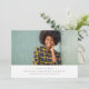 Celebrate your graduate with this classic and simple one-photo graduation announcement. The type below the horizontal photo includes plenty of room for the graduate's name, college or high school and year in a chic black. The back of the card is a soft grey with a grid pattern, but the background colour can be adjusted to any school colour by clicking "customise further."