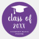 Simple Classic Purple and White Graduation Cap Classic Round Sticker