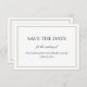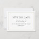 Simple classic typographic Save the Date wedding announcement card. Horizontal layout with block and elegant script text within thin double striped border. Small monogram on back. To adjust the layout, click Personalise It, Edit Text, then click and drag text sections to desired locations. Use Cntrl to select and move multiple sections at once. The monogram on back can be removed by clearing the text field, or by deleting the entry in layout view as noted above.